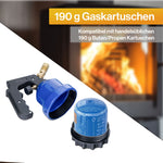 1× Iskra Gasbrenner mit Griff, 1× Anschluss für 190 g Gaskartuschen
