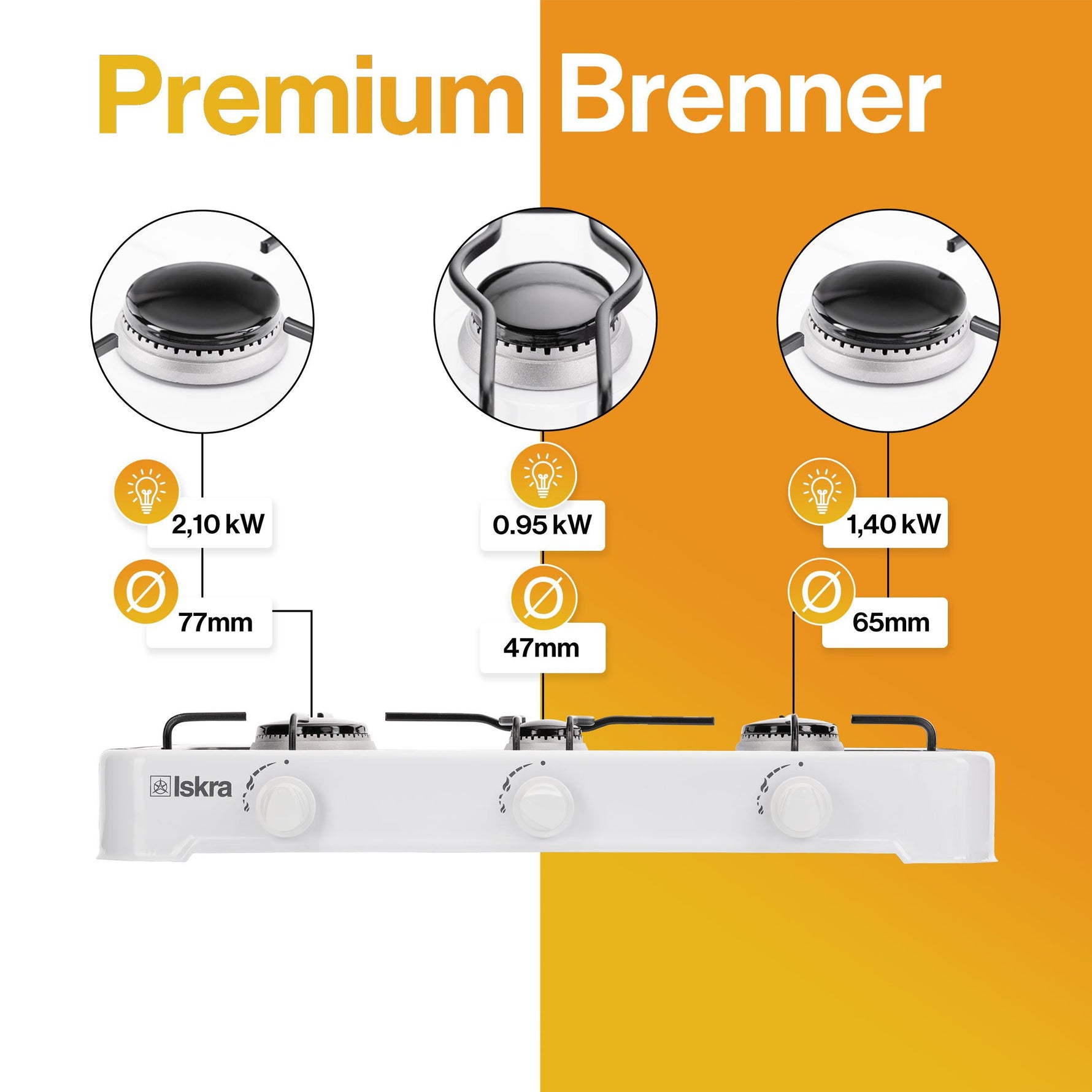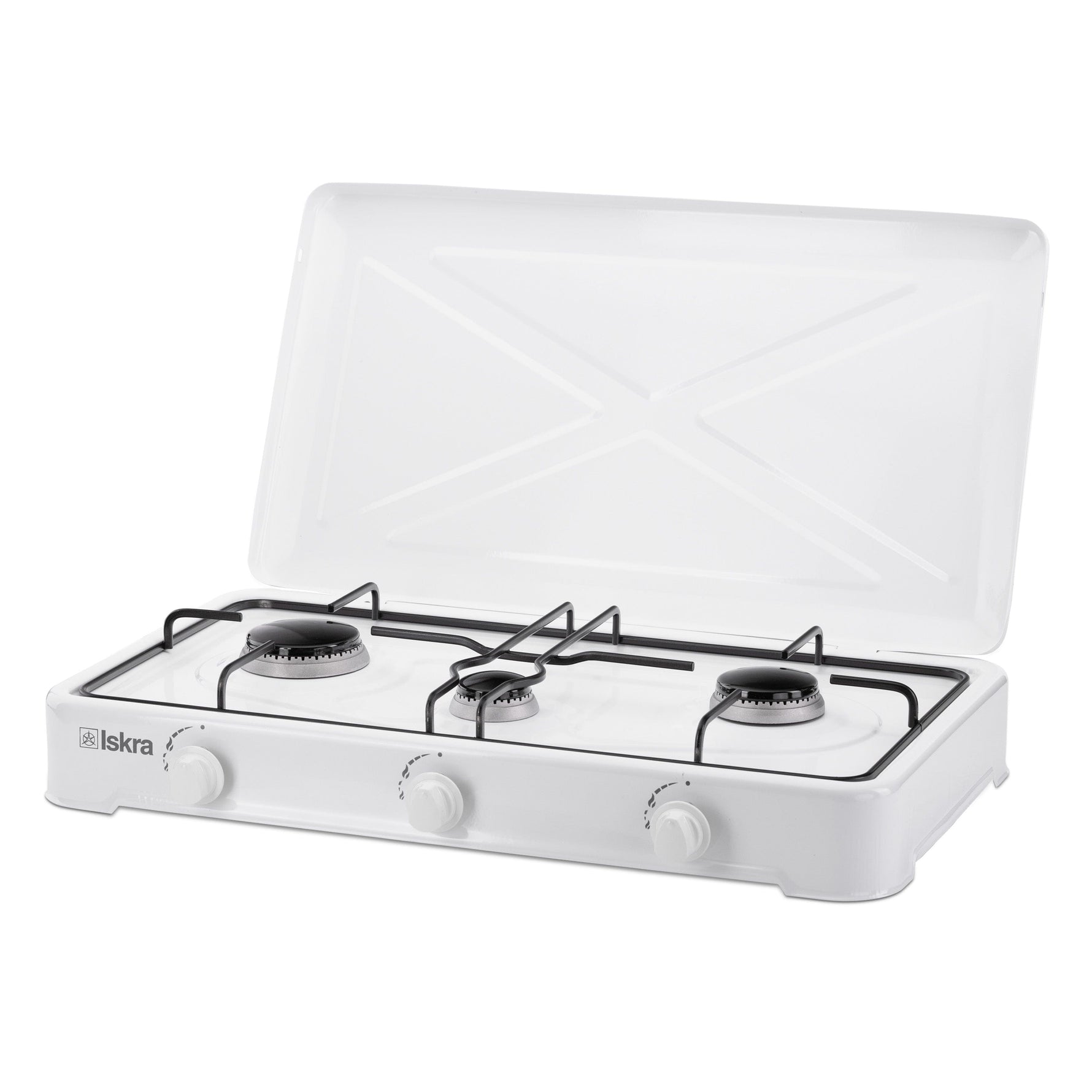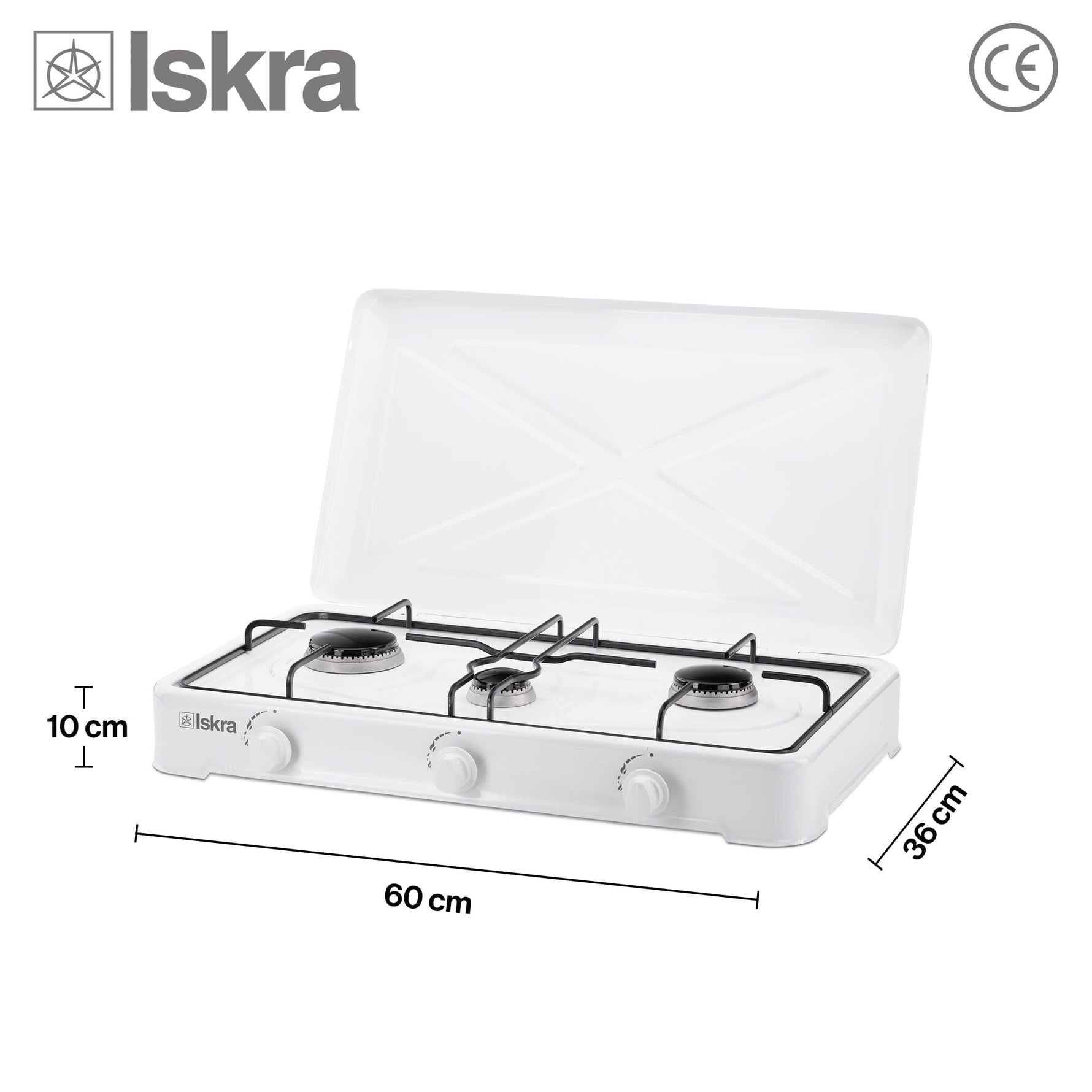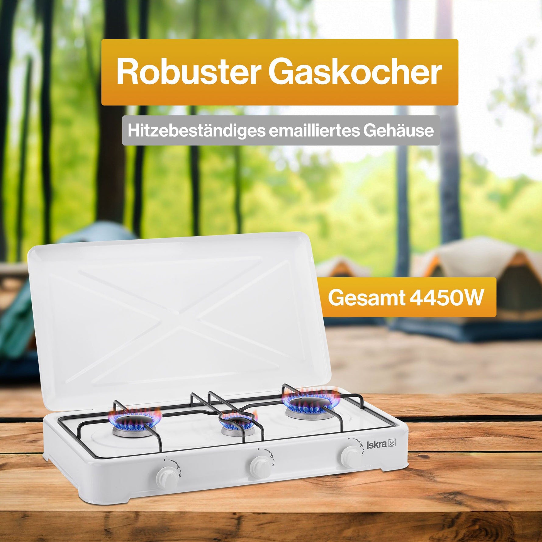 Iskra Gaskocher 3 flammig, 4,45 kW, Campingherd mit Deckel