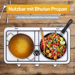 Die Hitzeverteilung über vier Brenner (0,95–2,10 kW) sorgt für effizientes Kochen. Dank 8 mm Gasanschluss ist er kompatibel mit Butan und Propan. Das robuste, emaillierte Gehäuse macht ihn langlebig und wetterfest. Praktisch, vielseitig und stark – für jede Outdoor-Mahlzeit.