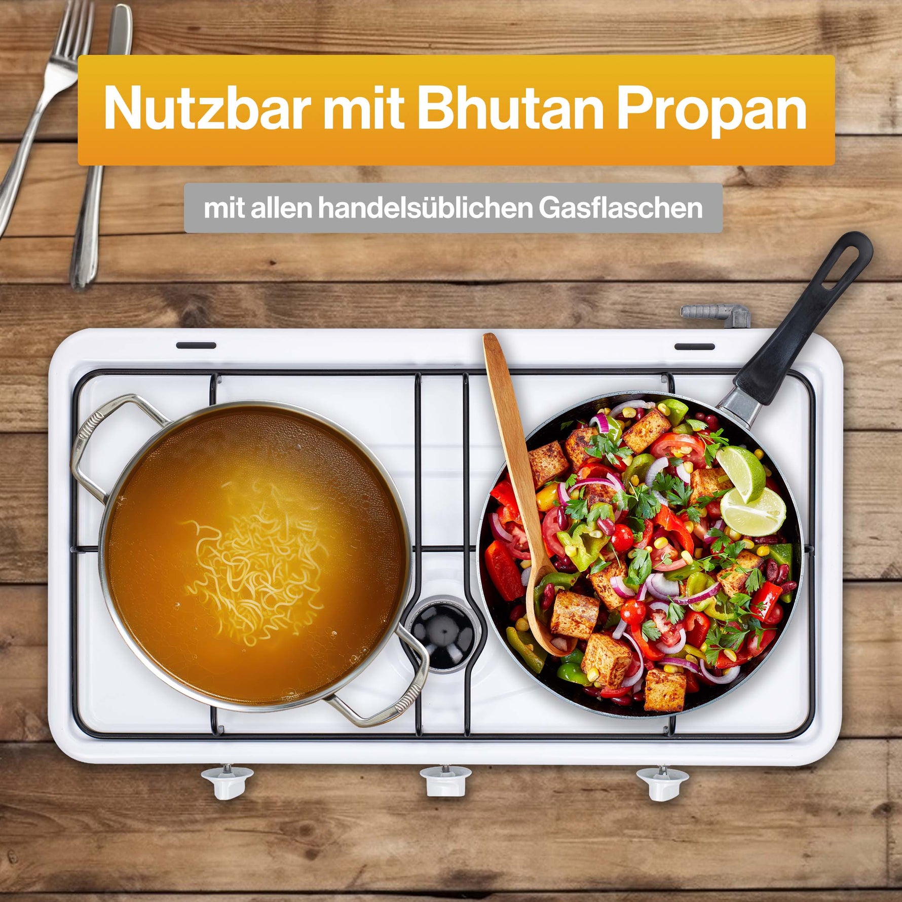Der leistungsstarke Iskra Camping-Gaskocher mit drei Flammen ist dein zuverlässiger Outdoor-Kochpartner. Mit einer Gesamtleistung von 4,45 kW und Windschutzdeckel eignet er sich ideal für Camping, Garten oder mobile Küchen.