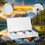 1x Iskra Camping-Gaskocher 3-flammig mit Windschutzdeckel, 8 mm Gasanschluss, Maße: 60,5 x 36 x 8,5 cm