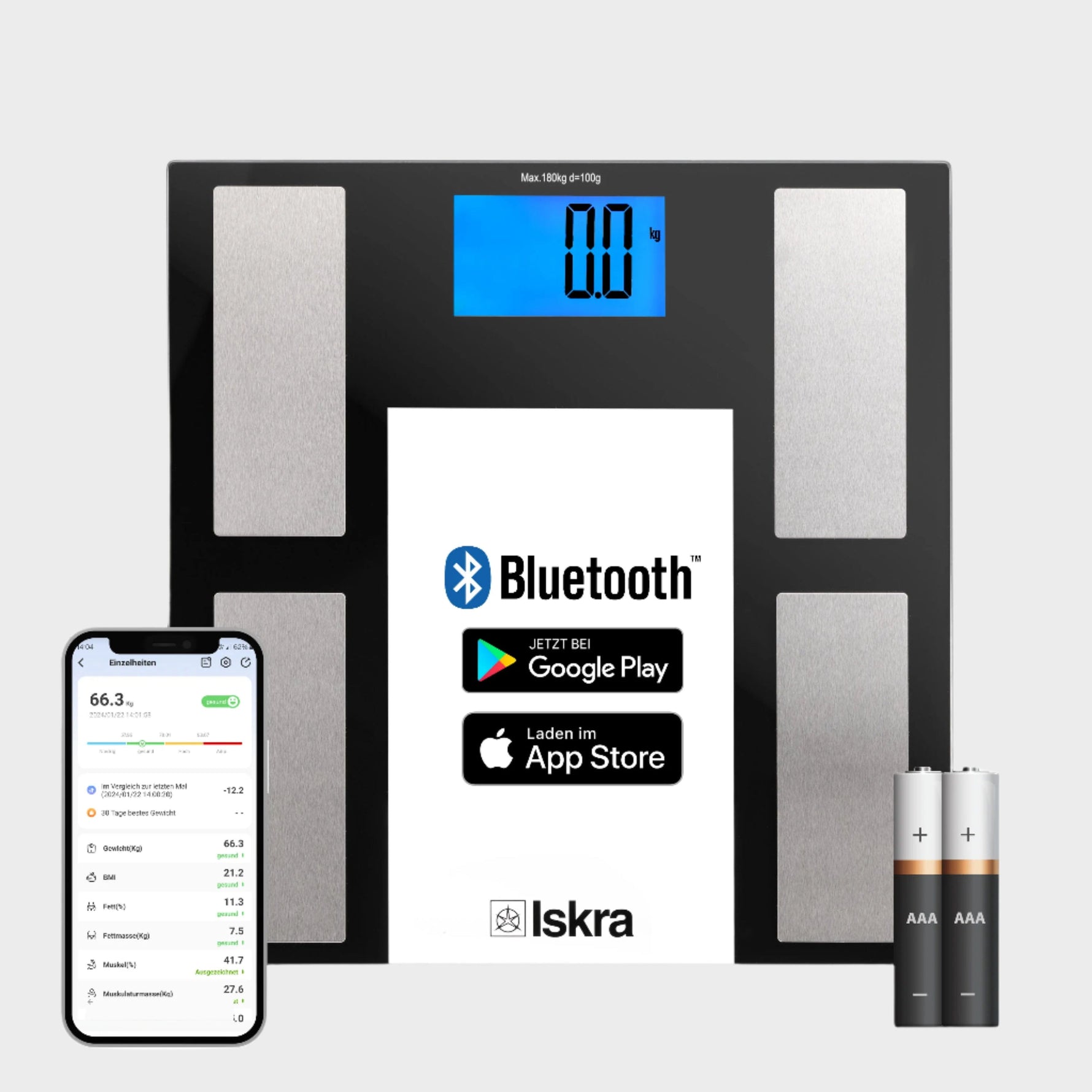 Iskra Körperanalysewaage, Bluetooth, LCD Anzeige, 150 kg